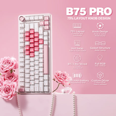 YUNZII B75 Pro White Heart Wireless Mechanical Keyboard