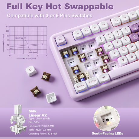 YUNZII B87 Purple Heart QMK/VIA Custom Mechanical Keyboard